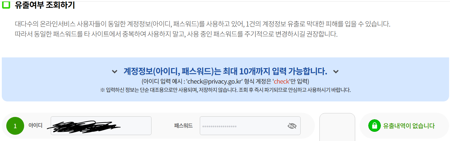 - 결과 확인: 만약 유출 내역이 있다면 즉시 해당 사이트의 비밀번호를 바꾸고 계정을 보호해야 합니다.